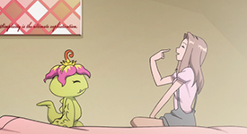Mimi easily becomes friends with Meiko, a character introduced in Digimon Adventure tri. Not long after meeting Meiko, she Meiko the nickname “Mei Mei” (which is also the Japanese onomatopoeia for the sound sheep make). She is equally affectionate with Meiko as she is with Sora, never hesitating to give her a hug when she really means it. Mimi is incredibly sensitive to Meiko’s feelings, defending her from Koushiro when he grilled her on Meicoomon’s history, and other times when she showed concern for Meiko’s feelings.